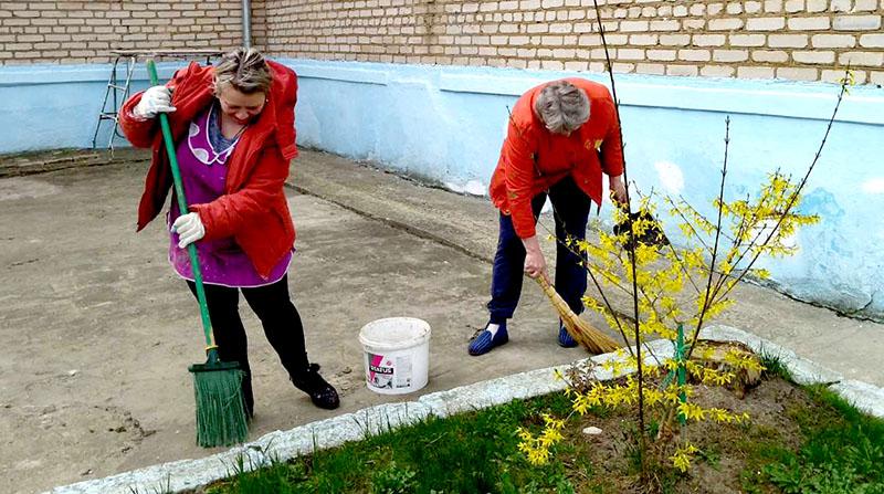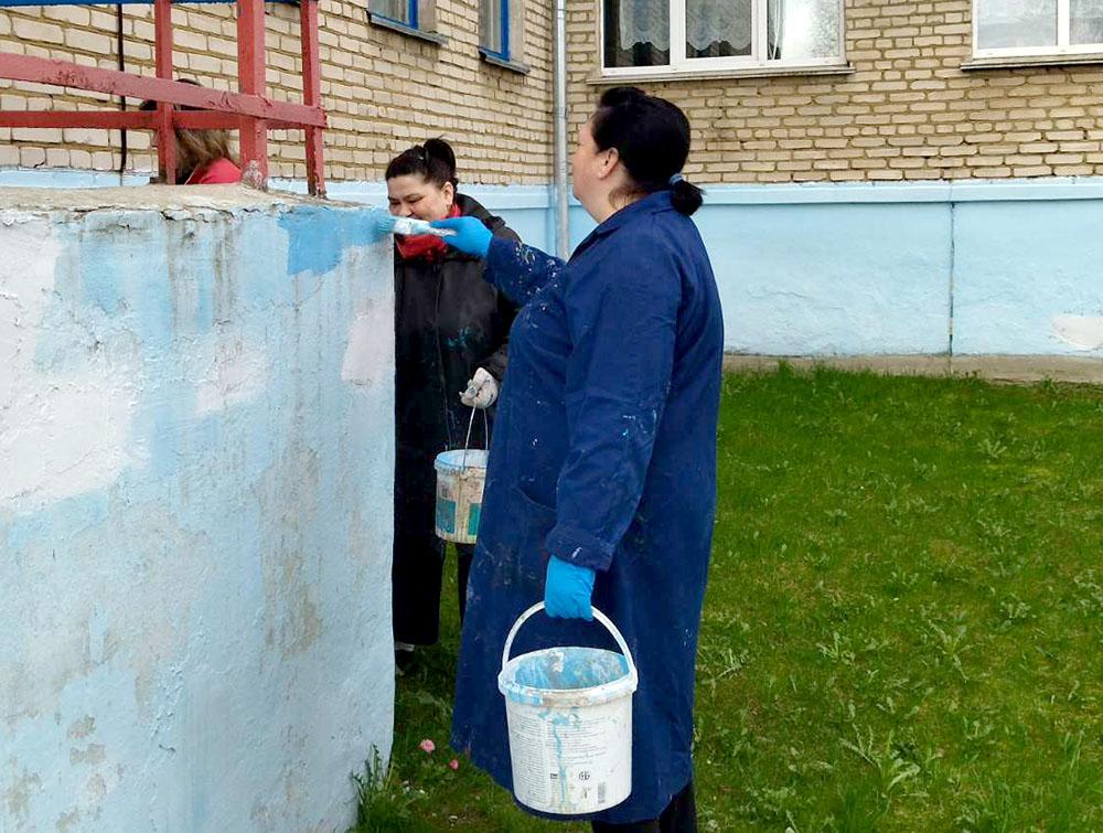 Персонал детского сада № 6 «Светлячок» в г. Климовичи дружно вышел на субботник. Фронт работ наметили немалый: привести в порядок цветочные клумбы, покрасить стены, навести порядок на прилегающей территории.