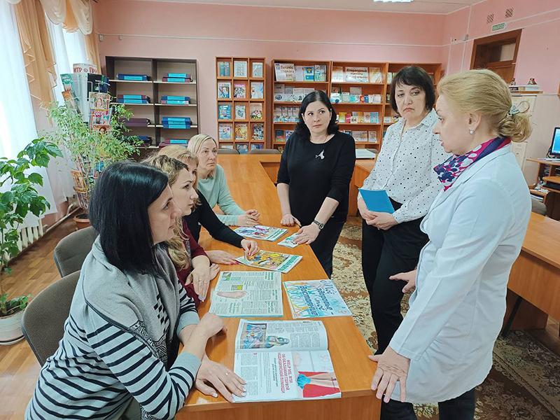 В трудовом коллективе библиотеки Алла Михайловна рассказала о том, какие патологии чаще всего встречаются у женщин, как часто нужно наблюдаться у врача, как подготовиться к осмотру, а также напомнила о правилах личной гигиены.