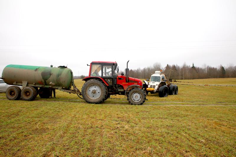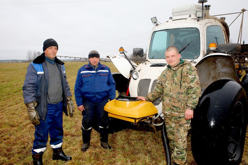 Труженики КСУП «Полошково» в числе первых на Климовщине вывели технику в поля. Как рассказал главный агроном сельхозпредприятия Владимир Мокшанин, вначале карбамидно-аммиачную смесь внесли на поля, где размещается озимая пшеница и ячмень (67 и 50 гектаров соответственно). Журналисты районной газеты застали звено механизаторов на Лобжанском участке. На «Росе» КАС вносил Максим Беляев. Подвозку удобрений на МТЗ-1221 осуществляли Дмитрий Антипов и Александр Семченко.