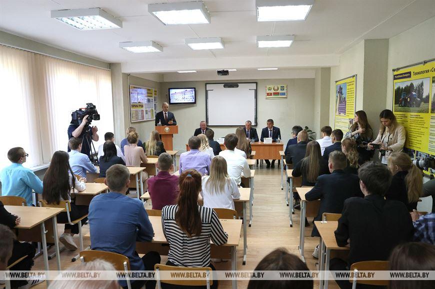 В рамках рабочей поездки на Климовщину 13 мая глава Администрации Президента Республики Беларусь Игорь Сергеенко встретился с учащимися Климовичского государственного аграрного колледжа.
