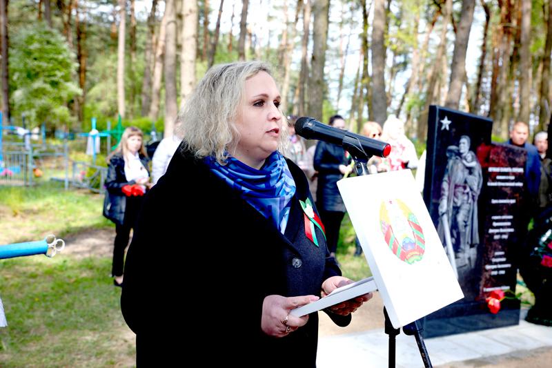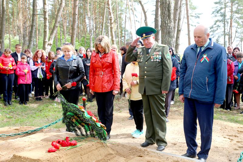 На деревенском кладбище в Домамеричах есть братская могила советских воинов. Туда перезахоронили останки земляка-красноармейца Григория Аксеновича Солдатенко, погибшего в октябре 1944 года на Крымском полуострове. Символично, что такое мероприятие было организовано накануне 78-й годовщины со Дня Великой Победы. К присутствующим — представителям предприятий, организаций, учащейся молодежи, школьникам — обратилась председатель Климовичского районного Совета депутатов, председатель районной организации РОО «Белая Русь» Наталья Асмоловская.