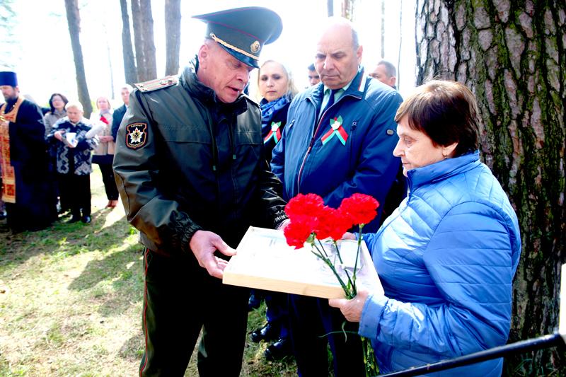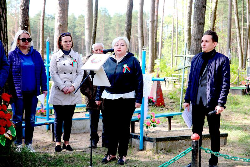 Слова благодарности в адрес поисковиков и всех, кто был причастен к установлению имени героя, высказала племянница Григория Аксеновича Любовь Барткявичене. На мероприятии выступила учитель Полошковской средней школы, руководитель Климовичской поисковой группы «Спадчына» общественного объединения «Могилевский областной историко-патриотический клуб «Виккру» Наталья Козлова.