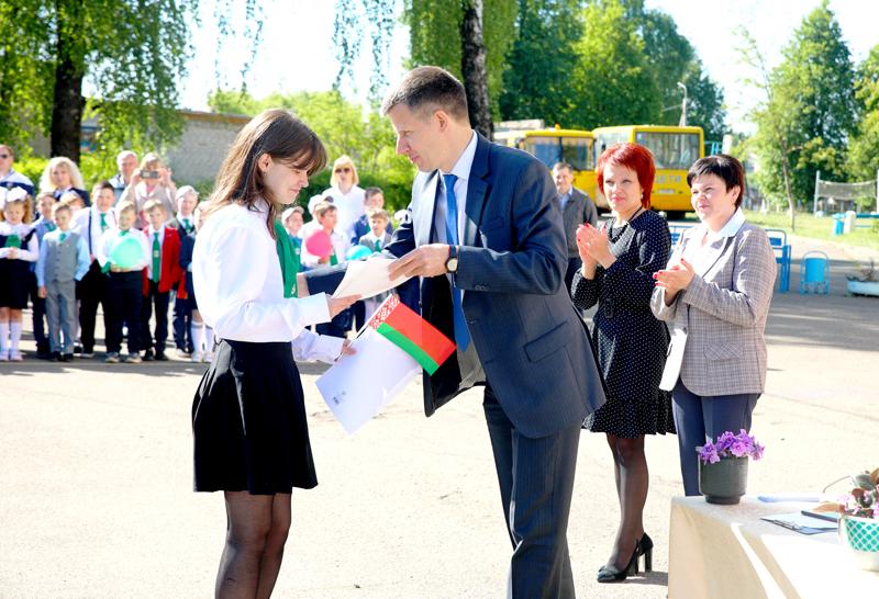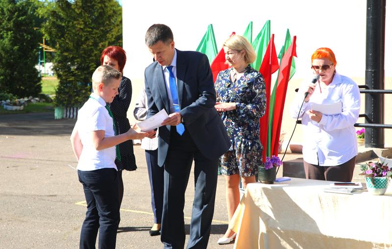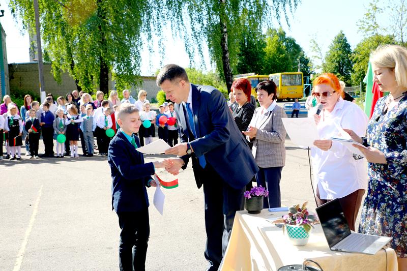 Сегодня в учебном заведении получают знания более 440 ребят. Торжественная линейка началась с коллективного исполнения Государственного гимна Республики Беларусь. С окончанием четвертой четверти и началом летних каникул детей и взрослых поздравил директор гимназии Андрей Зенькович.