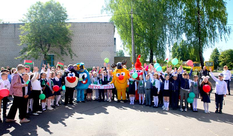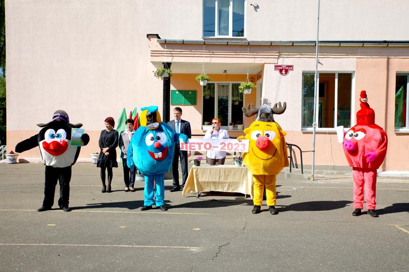 С началом летних каникул мальчиков и девочек поздравили сказочные персонажи. По окончании линейки ребята устроили фотосессию.