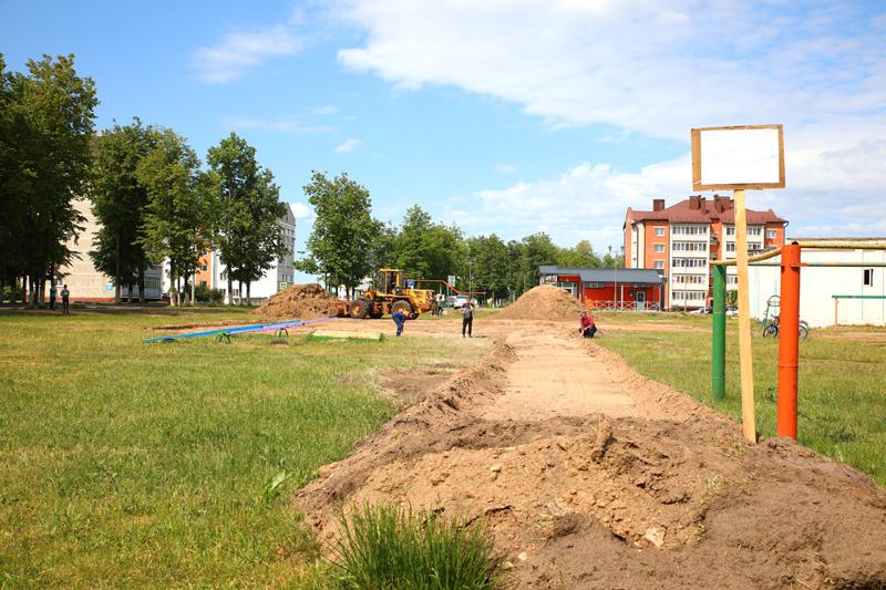 ФОТОФАКТ: В Климовичах на улице Ленина ведется строительство детской площадки