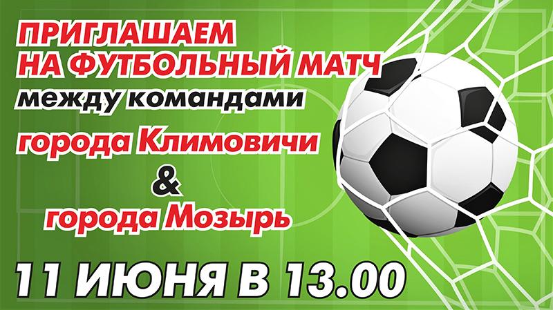АктуальноОбщество 11 июня в Климовичах состоится футбольный матч От Родная Нiва - 10.06.2023 В воскресенье, 11 июня, на городском стадионе в 13:00 состоится футбольный матч между командами Климовичей и Мозыря. За победу поборются девочки в возрасте до 15 лет. Приглашаем климовчан поддержать наших игроков.