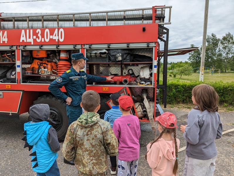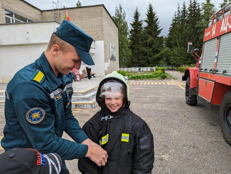 С ребятами из пришкольного лагеря Малашковичской базовой школы спасатели решали ситуационные задачи, рассказывали о последствиях игр с огнем, в очередной раз напомнили, по каким номерам и как правильно вызвать по телефону экстренные службы. У детей была возможность примерить на себя боевую форму и почувствовать себя настоящими спасателями.