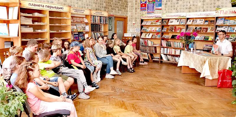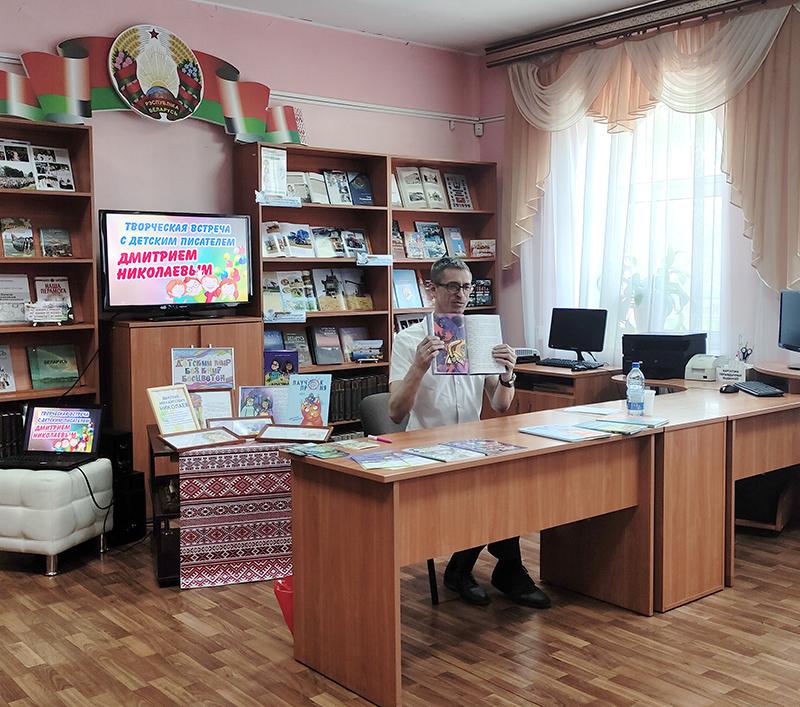 Центральная районная библиотека имени И.Пехтерева всегда предлагает своим читателям принимать участие в интересных мероприятиях. Особенно этому уделяется внимание в период летних каникул. На этот раз в гости в библиотеку приехал известный детский писатель, член Союза писателей Беларуси Дмитрий Николаев. Дмитрий Михайлович является автором книг «Приключения любопытного волчонка», «Паучок Проня», «Питер, Лейла и Кристаллы добра», «Калядныя цуды» и других.