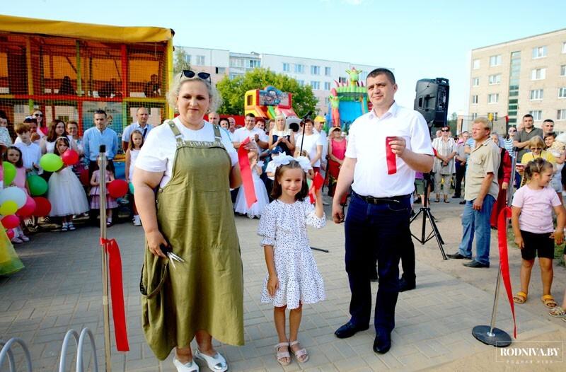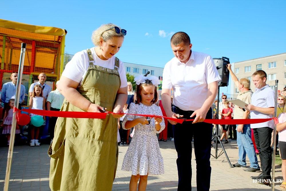 Красную ленточку в торжественной обстановке перерезали председатель райисполкома Дмитрий Хайновский, председатель районного Совета депутатов Наталья Асмоловская и представитель юного поколения Саша Котова.