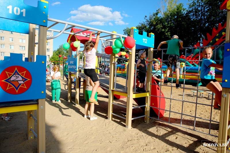 В рамках праздника микрозоны «улицы Ленина» в г. Климовичи состоялось торжественное открытие новой детской спортивно-игровой площадки.