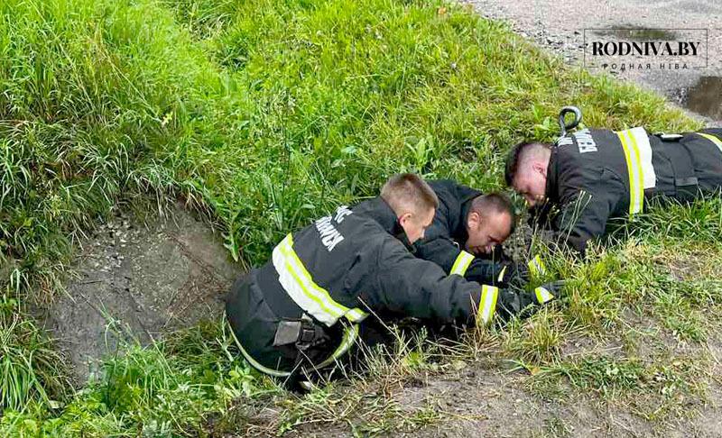 Климовичские спасатели освободили собаку из трубы