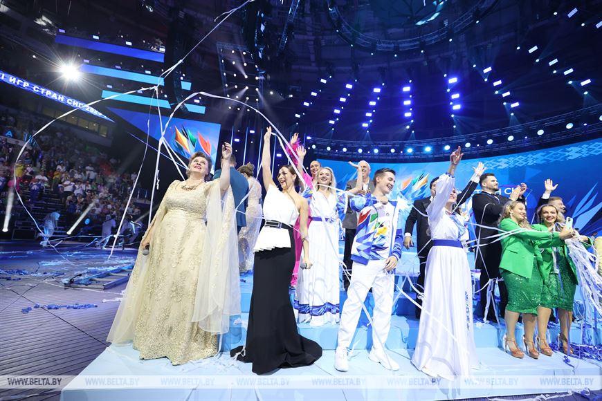 Во время церемонии на сцену вышли атлеты, тренеры, волонтеры и другие участники Игр с флагами стран, которые они представляют. Флаг СНГ передали Азербайджану — именно там в 2025 году пройдут следующие Игры стран Содружества. А Игры, прошедшие в Беларуси, закрыл генеральный секретарь СНГ Сергей Лебедев. После закрытия гостей ждала музыкальная и танцевальная программа.
