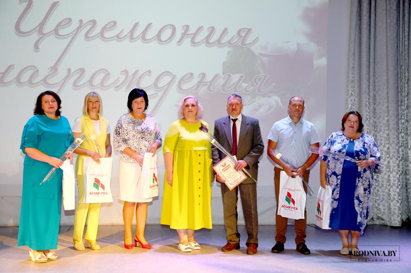 Ценными подарками от общественного объединения «Белая Русь» награждены учитель начальных классов средней школы № 1 Любовь Гомолко, учитель начальных классов районной гимназии Лариса Лифинцева, учитель физической культуры и здоровья средней школы № 1 Максим Овчинников, заместитель директора по учебной работе средней школы № 3 Наталья Рашук, заведующий экологическим отделом центра дополнительного образования детей и молодежи Светлана Романова.