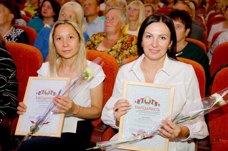 Почетные грамоты главного управления по образованию Могилевского облисполкома вручены учителю математики Тимоновской средней школы Татьяне Захаренко, учителю музыки средней школы № 3 Людмиле Лукше, учителю начальных классов Барсуковской базовой школы Людмиле Новиковой, учителю белорусского языка и литературы Тимоновской средней школы Наталье Поролевой, педагогу-организатору средней школы № 3 Анне Раковской, заместителю директора Полошковской средней школы Алле Сергеенко, воспитателю дошкольного образования детского сада № 7 «Теремок» Наталье Судиловской.