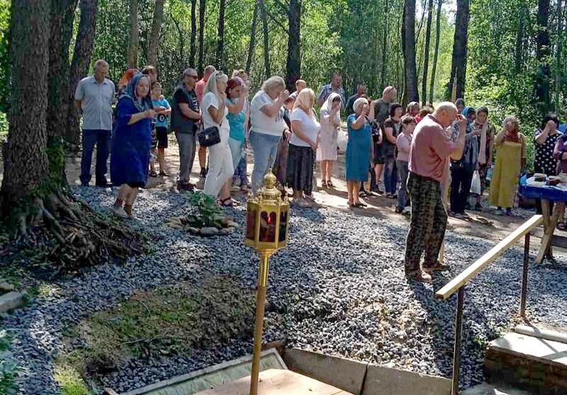Второй обряд проводился у источника Тихвинской Иконы Божией Матери (возле д. Юрьевичи, что возле Макеевичей). Криничную воду и медопродукты освящал настоятель Милославичской и Звенчатской церквей отец Николай. Сюда пришли и приехали не только жители близлежащих деревень, Климовичского района, но и из приграничных с нашим районов России.