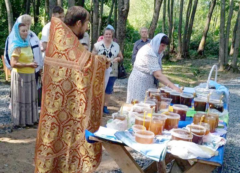 В Климовичском районе в этот раз проводилось два праздничных мероприятия. Одно из них — у деревни Новый Дедин. Вначале верующие прошли Крестным ходом до Бездонного колодца, где настоятель Свято-Михайловского храма отец Иннокентий провел чин освящения воды. Также был освящен мед и медопродукты.