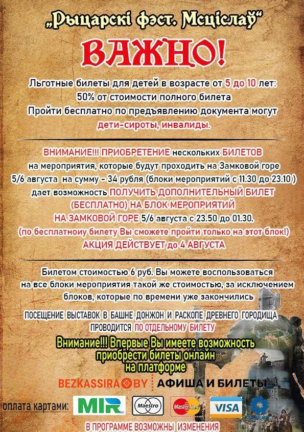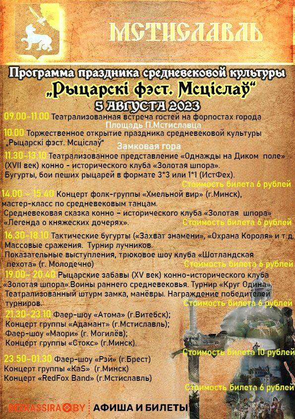В г. Мстиславль 5-6 августа пройдет праздник средневековой культуры. «Рыцарский фест. Мстиславль» — яркое и атмосферное мероприятие, которое проходит в одном из старинных городов Беларуси, подарит вам много интересных впечатлений. Организаторы подготовили для гостей фестиваля средневековые квесты, поиски клада, средневековые аттракционы, фотозоны, разнообразные тематические выставки и батлейка и многое другое.
