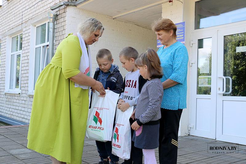 В преддверии нового учебного года председатель Климовичского районного Совета депутатов — председатель районной организации РОО «Белая Русь» Наталья Асмоловская вручила школьные принадлежности ребятам из семьи Сидоренко, проживающей в агрогородке Милославичи. В семье растут пятеро детей, трое из них — учащиеся Милославичской средней школы.