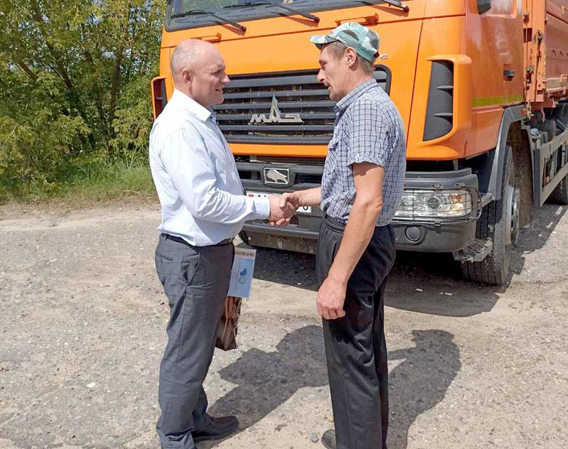 По уже сложившейся традиции председатель райкома профсоюза работников агропромышленного комплекса Александр Голочевский отправился поздравлять лидеров на рабочем месте — в поле, где вручил Благодарственные письма райкома и ценные подарки.