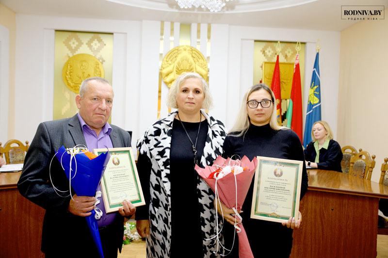 Наталья Асмоловская поблагодарила за многолетнюю совместную работу председателя Галичского сельского Совета депутатов Валерия Филимонова и управляющего делами местного органа власти Викторию Василькову.
