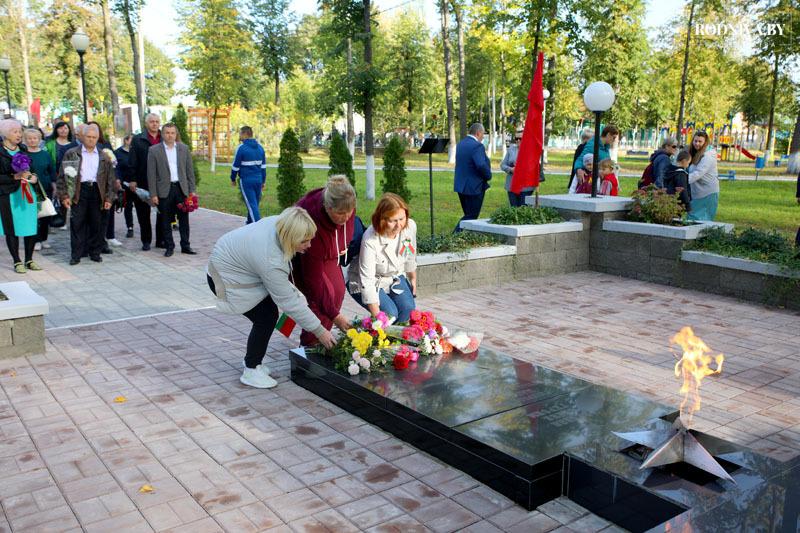 17 сентября климовчане собрались на площади 50 лет Великого Октября, чтобы возложить цветы на братскую могилу в городском парке и отдать дань уважения воинам, погибшим в годы Великой Отечественной войны.