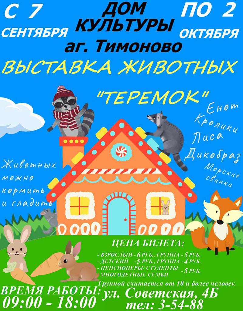 Весело и полезно предлагает провести свободное время Климовичский районный краеведческий музей. Учреждение культуры приглашает всех желающих посетить выставку животных «Теремок», которая будет работать с 7 сентября по 2 октября 2023 года по адресу: аг. Тимоново, ул. Советская, 4б (Дом культуры).