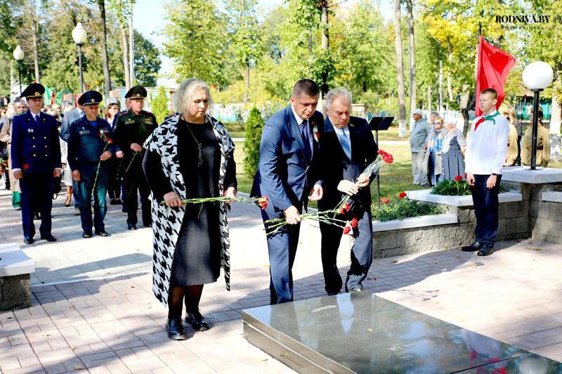 По традиции представители органов власти, трудовых коллективов, общественности возложили цветы на братскую могилу на городском кладбище.