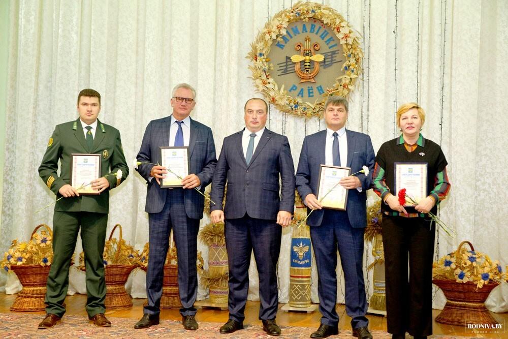 Александр Савченко вручил Благодарственные письма за оказанную помощь в уборке урожая ОАО «Климовичский комбинат хлебопродуктов» (директор Василий Захаренко), УКП «Коммунальник» (директор Сергей Володкович), Климовичскому лесхозу (директор Михаил Степанов), государственному аграрному колледжу (директор Татьяна Кондратьева).