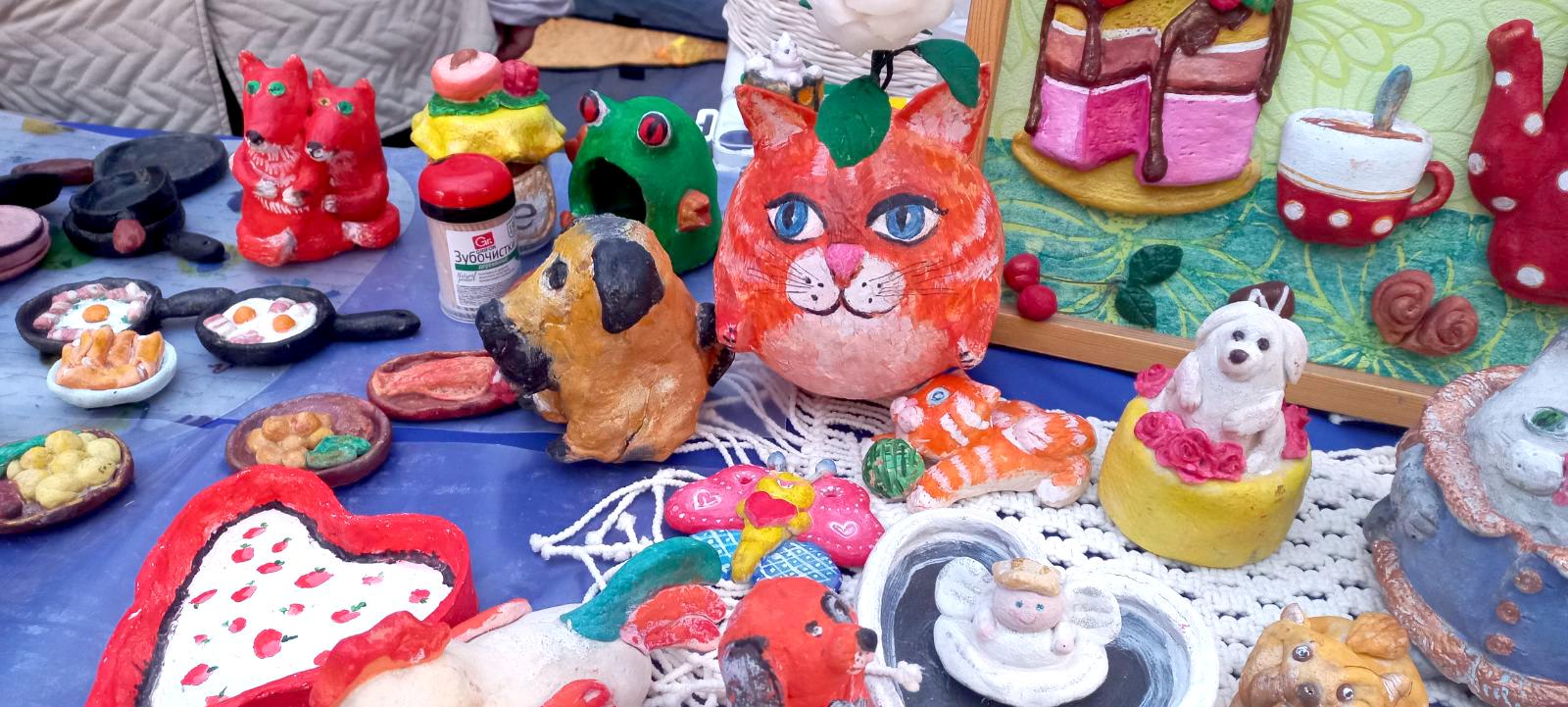 Представители Климовичского районного центра дополнительного образования детей и молодежи показывают мастер-класс по работе с фоамираном. Изделия из пластичной замши завоевывают популярность среди тех, кто увлекается изготовлением различных поделок из уникальных материалов. Педагоги центра проводят мастер-классы по тестопластике «Белорусская кухня», а юные климовчане — воспитанники учреждения — выступают на тематических спортивных площадках, участвуют в концертной программе.