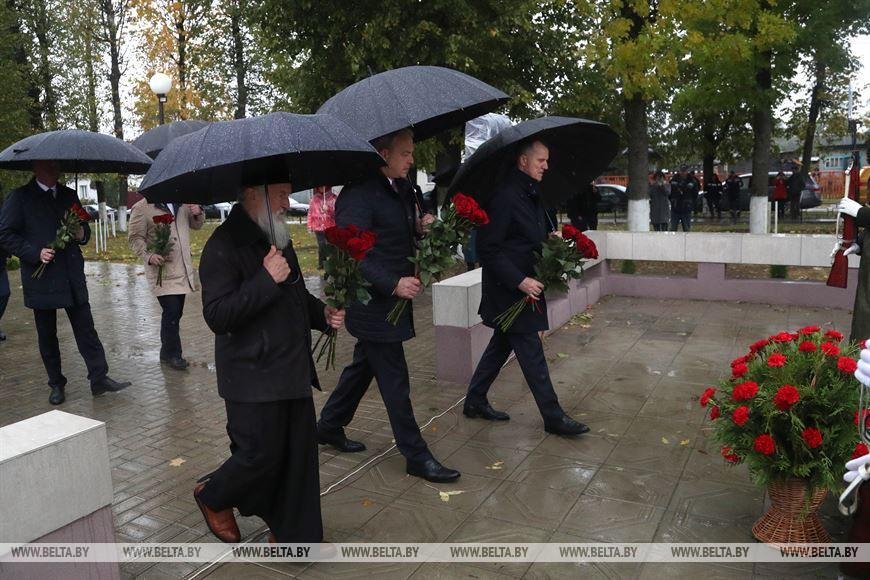 Стартом праздничных мероприятий в Хотимске стала церемония возложения цветов к братской могиле. После этого почетные гости ознакомились с праздничными подворьями и приняли участие в церемонии открытия обновленного районного Центра культуры «Мир».