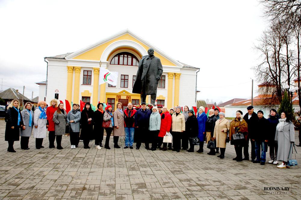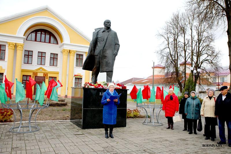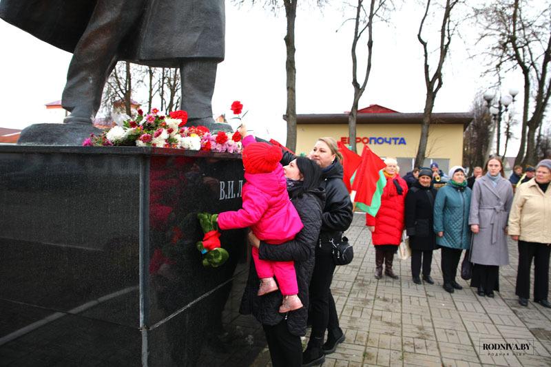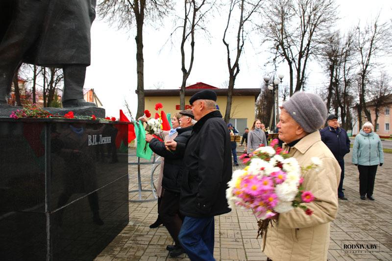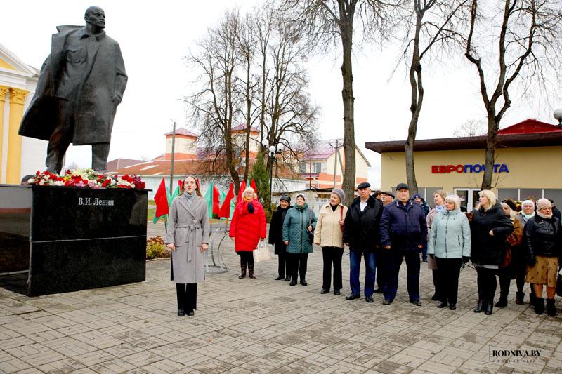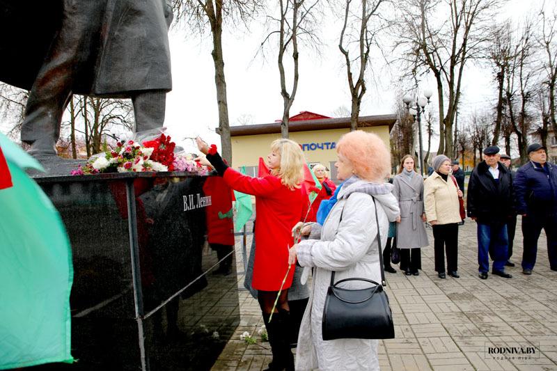 Представители органов власти, труженики предприятий и организаций, члены общественных формирований возложили цветы к памятнику В. И. Ленину.