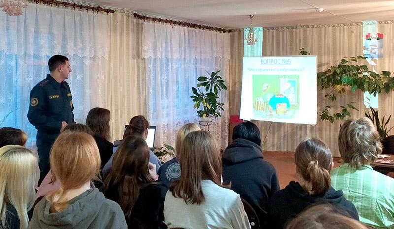 Работники МЧС напомнили собравшимся об основных требованиях пожарной безопасности, как в учебном заведении, так и в быту, о действиях в случае возникновения чрезвычайных ситуаций, а также о применении первичных средств пожаротушения. Провели интеллектуальную QUIZ-игру «No Smoking Quiz».