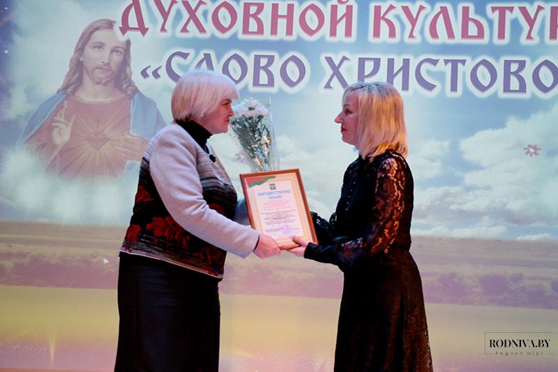 Мария Николаевна провела церемонию награждения.Благодарности за содействие в организации форума объявлены Благочинному Климовичского церковного округа и настоятелю Свято-Михайловского храма священноиноку Иннокентию Смолякову, Благочинному Десногорского церковного округа и настоятелю Богородице-Скорбященского собора протоиерею Виталию Сладкову, организатору и ведущей фестиваля, заведующему отделом центральной районной библиотеки Ольге Максимович.
