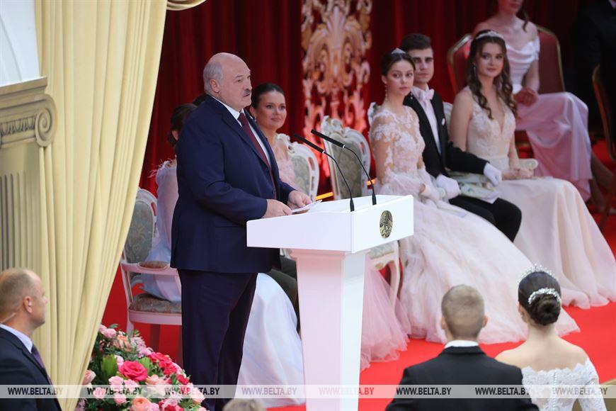 Всех собравшихся тепло приветствовал Президент Беларуси Александр Лукашенко. «Наступил тот единственный день в году, когда наш Дворец Независимости кардинально меняет свой облик. Буквально несколько часов назад в кабинетах, залах этого здания решались важные вопросы политики, экономики, безопасности. Сейчас здесь царит атмосфера музыки и танца. Атмосфера молодости. Важно то, что все это происходит один раз в год и только для вас, — отметил глава государства. — И видя удивительно красивых, счастливых молодых людей, я с благодарностью думаю о ваших родителях, учителях, преподавателях».