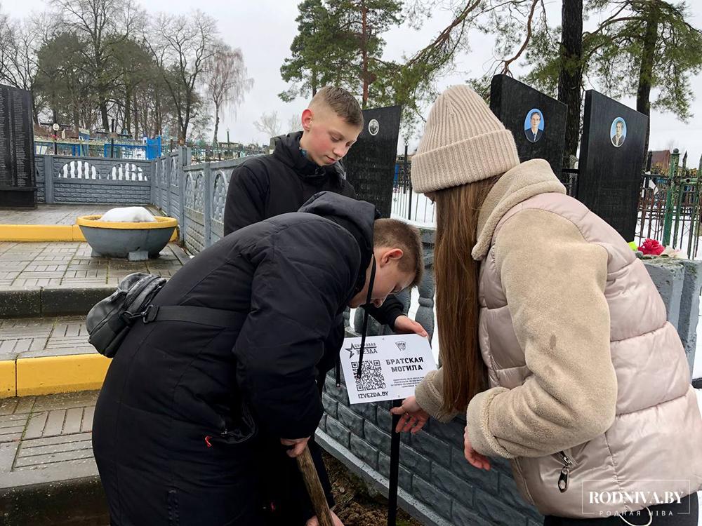 В рамках реализации международного историко-патриотического проекта «Цифровая звезда» первый секретарь райкома ОО «БРСМ» Алина Рябцева вместе с учащимися первой городской школы установили стилизованную табличку с QR-кодом возле Братской могилы на городском кладбище в г. Климовичи.