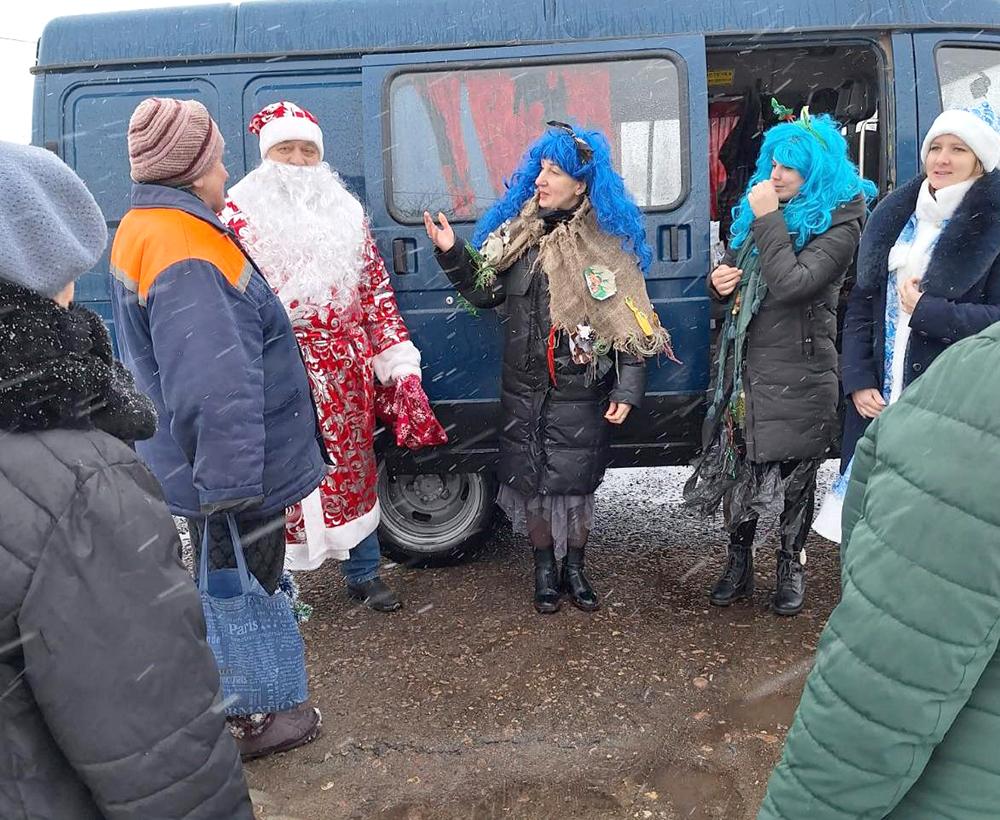 Так, библиотекари отправились по маршруту библиобуса в деревню Хотень, чтобы поздравить сельчан с наступающими праздниками. Жителей населенного пункта ждала встреча не только с книгами и журналами, но и с Дедом Морозом, Снегурочкой и сказочными персонажами. Читатели с радостью встречали необычных гостей, охотно вспоминая новогодние стихи и песни, участвовали в конкурсах, а в награду получили поздравительные открытки и отличное настроение.