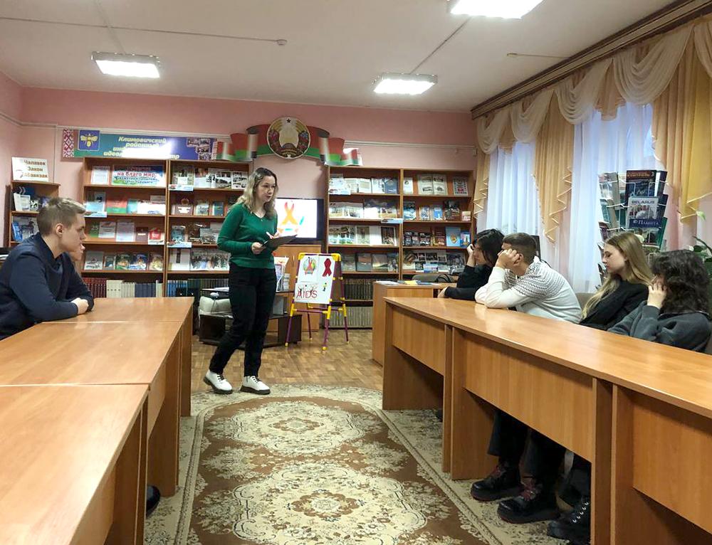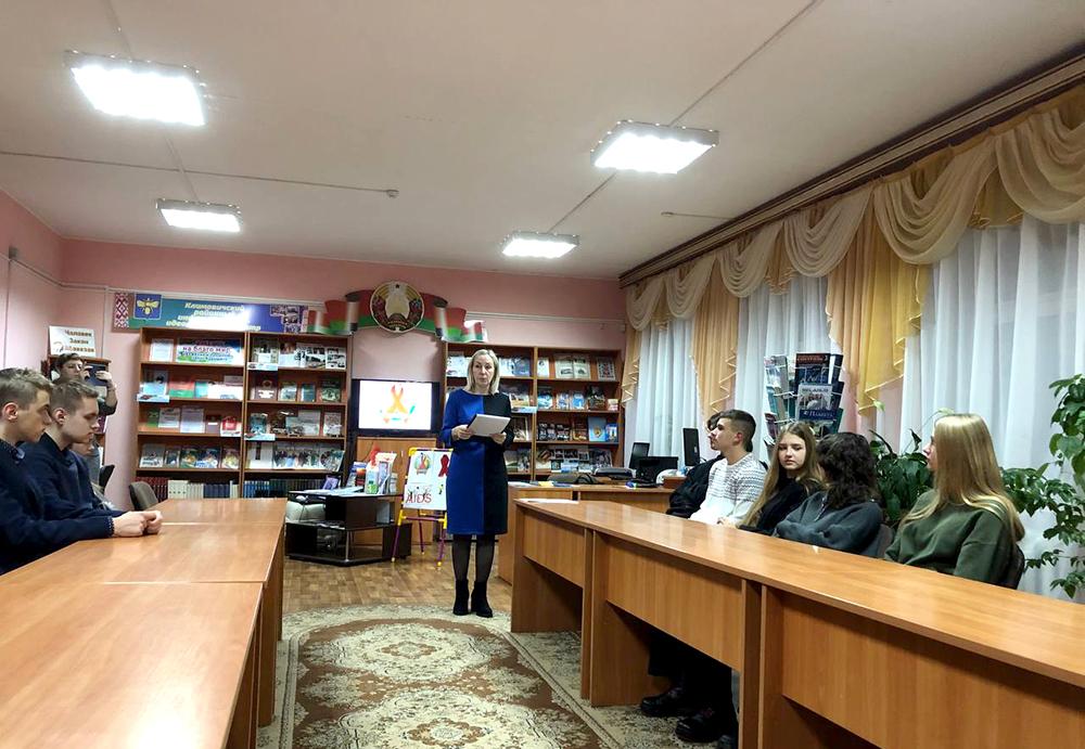 Сотрудники центральной районной библиотеки имени И. Пехтерева для учащихся 11 класса средней школы № 3 провели информационный час «Ответственное поведение —защита от ВИЧ/СПИД». Во время встречи ребята узнали об истории болезни, о том, как избежать заражения инфекцией, чем отличается ВИЧ от СПИДа и есть ли лекарство от них. Библиотекари подчеркнули, что каждый человек несет личную ответственность за защиту от заражения как самого себя, так и других людей. Одиннадцатиклассникам напомнили, что в Республике Беларусь не только умышленное заражение ВИЧ-инфекцией, но и даже постановка под угрозу заражения этим заболеванием является преступлением, а ответственность наступает с 16-летнего возраста.