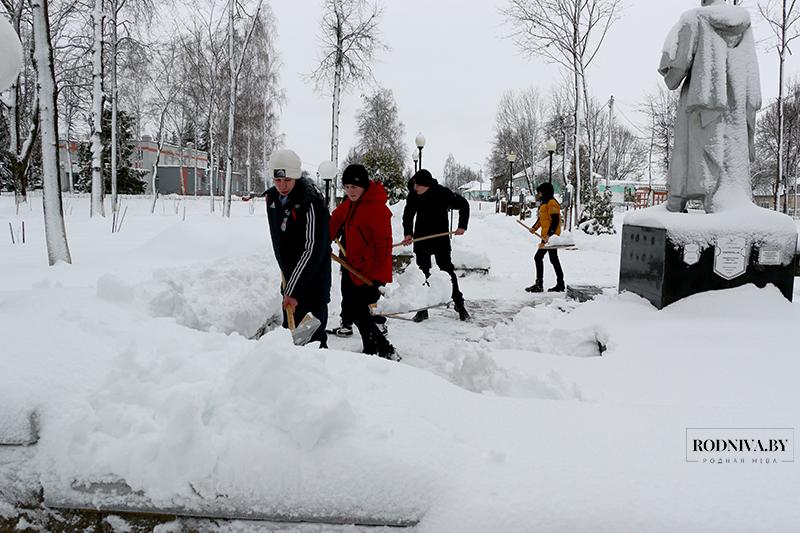 Учащиеся Климовичской средней школы № 3 пришли в парк и расчистили дорожки у мемориального комплекса. Забота о памятниках — дань уважения павшим в боях за Родину.