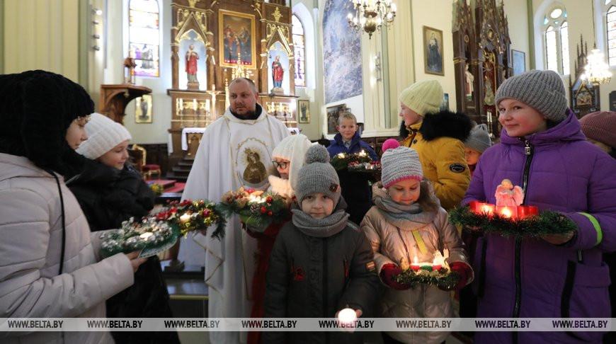 Открываем ажурной ковки ворота — и мы под высокими сводами костела, где уже началась имша, кстати, под аккомпанемент гитары. В самых важных местах молитвы, когда ксендз Дмитрий зачитывает на белорусском языке заповеди Иисуса Христа, раздается звон колокольчиков. Так прислуживающие настоятелю храма мальчишки расставляют акценты — выделяют главное в предрождественских молитвах.