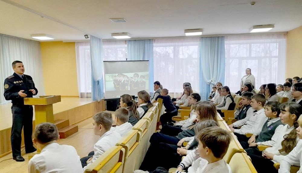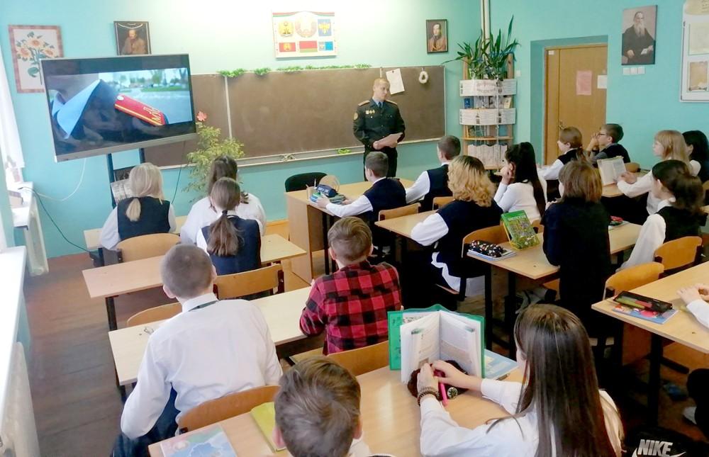 Помощник начальника районного отдела Департамента охраны по идеологической работе и кадровому обеспечению Евгений Фоменков и командир взвода роты милиции Александр Усенко встретились с ребятами из первой и Тимоновской средних школ, районной гимназии. Участники мероприятия говорили о порядке приема в специализированный лицей Министерства внутренних дел Республики Беларусь. Школьники посмотрели тематические видеоролики о жизни лицеистов.