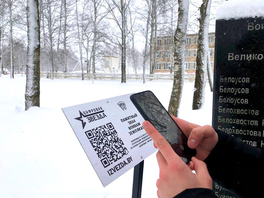 Возле памятного знака воинам-землякам была установлена стилизованная табличка проекта «Цифровая звезда» с QR-кодом. Молодое поколение должно помнить героев и чтить свою историю.