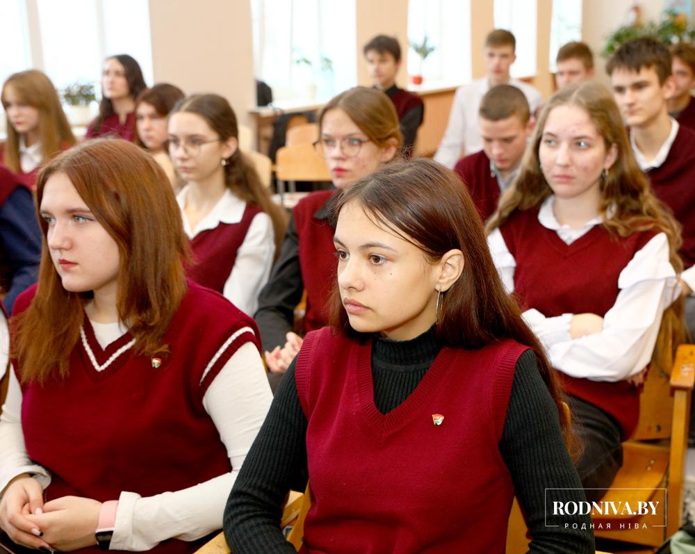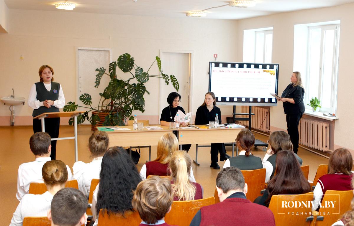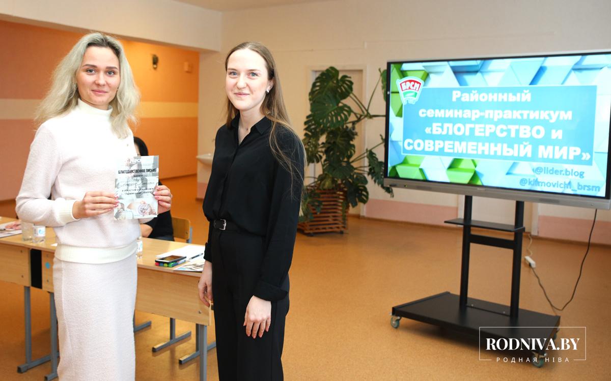 Первый секретарь райкома БРСМ Алина Рябцева вручила школьникам дипломы за участие в районном конкурсе видеороликов «Нет наркотикам» и благодарственные письма за участие в областном конкурсе «Первое слово — мама».