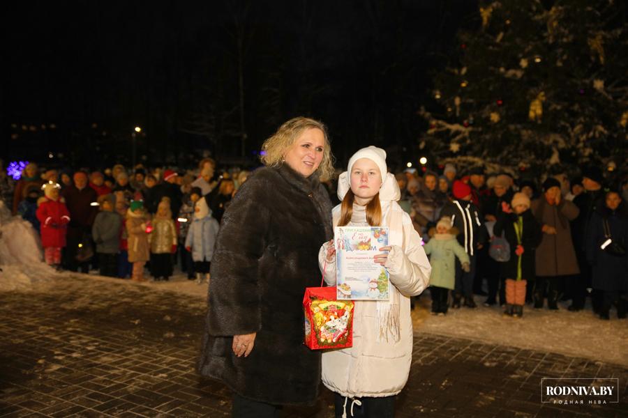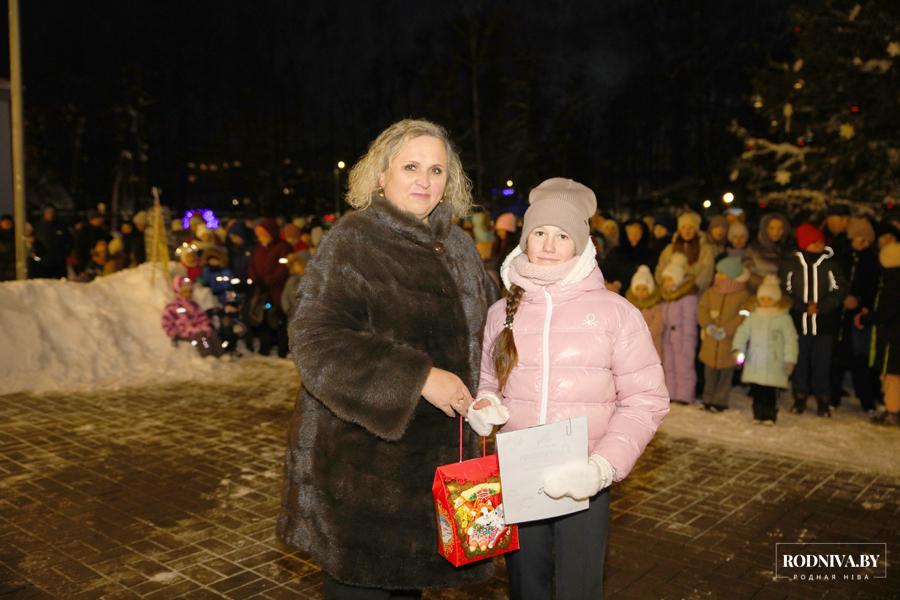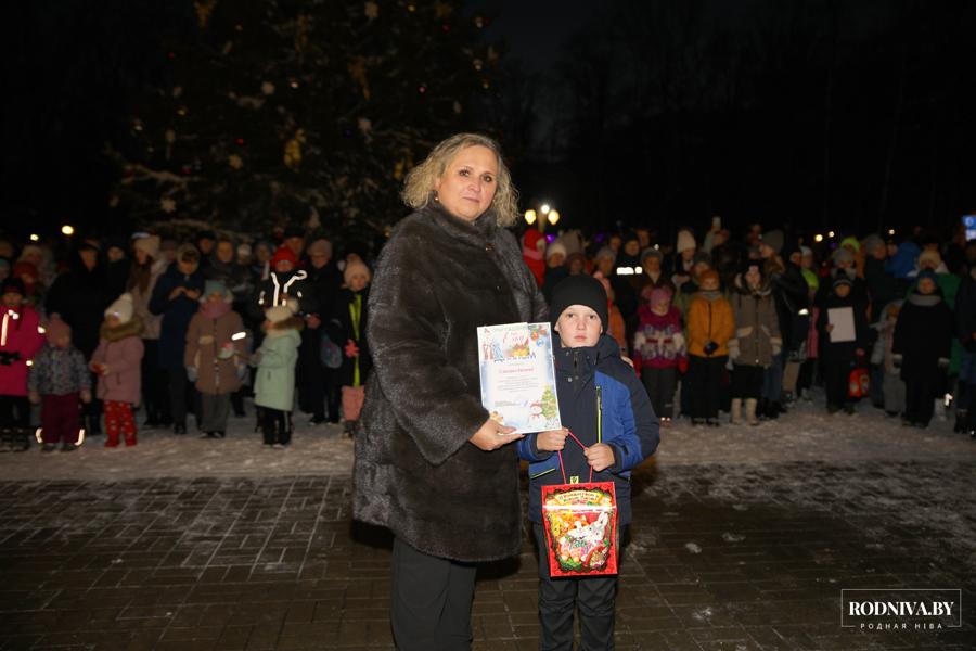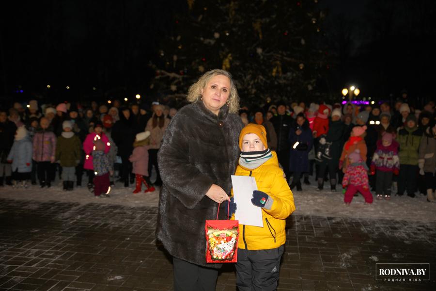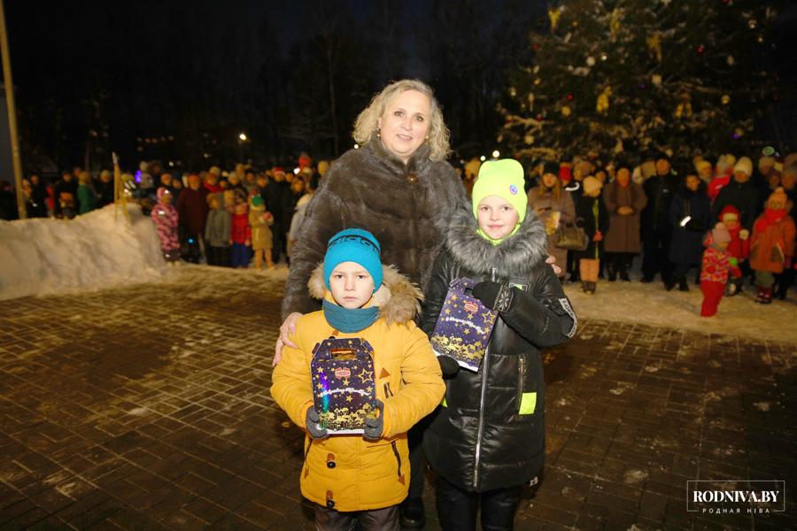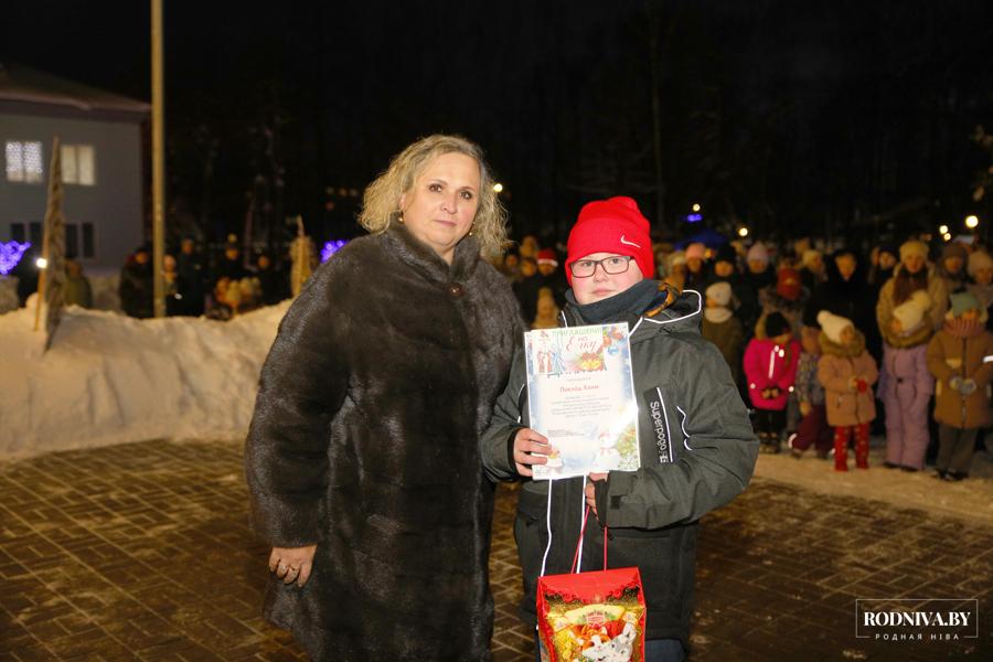 Площадь 50 лет Великого Октября в райцентре стала местом проведения театрализованного представления, во время которого на главной новогодней елке района зажглись праздничные огни. Торжество открылось церемонией награждения победителей и участников районного этапа-конкурса «Письмо Деду Морозу». Награды ребятам вручила лидер депутатского корпуса Климовщины, председатель районной организации РОО «Белая Русь» Наталья Асмоловская.