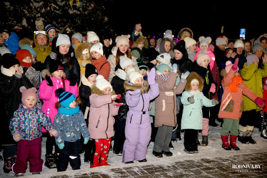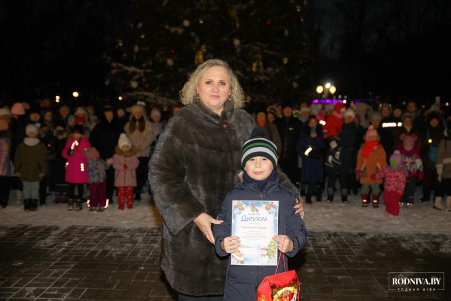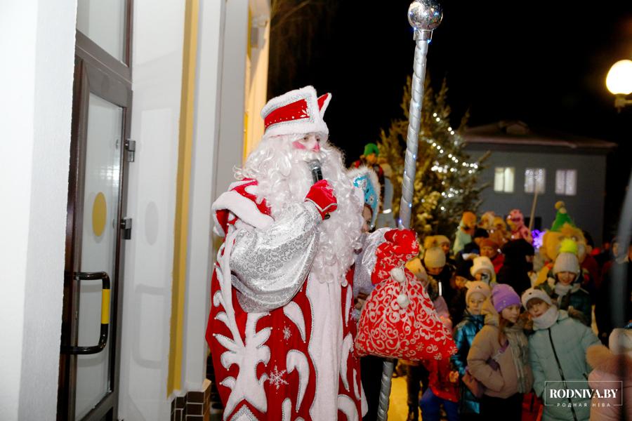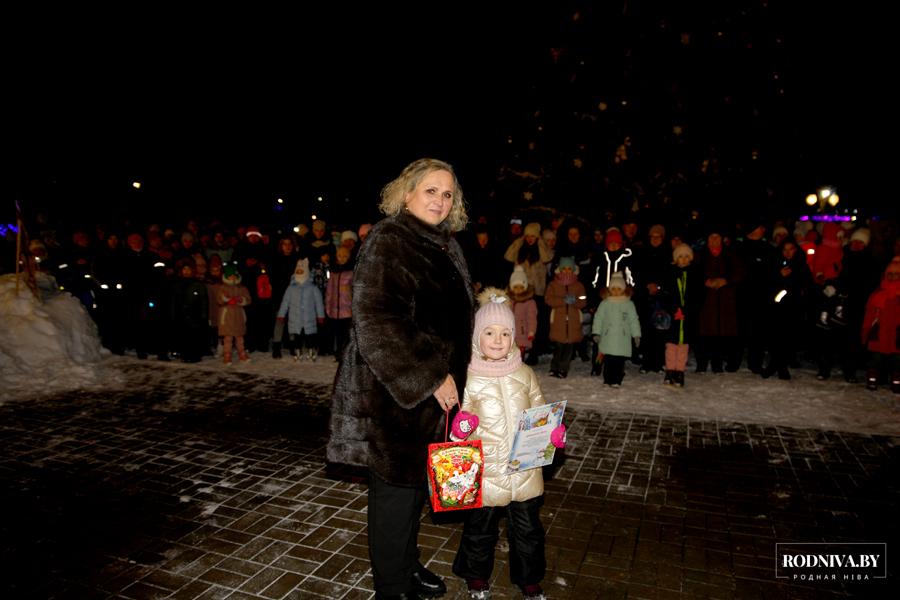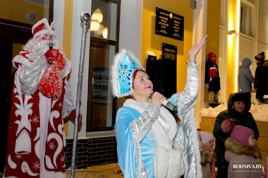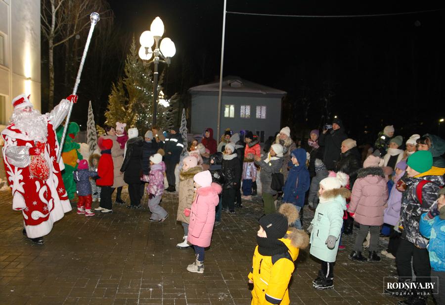 Площадь 50 лет Великого Октября в райцентре стала местом проведения театрализованного представления, во время которого на главной новогодней елке района зажглись праздничные огни. Торжество открылось церемонией награждения победителей и участников районного этапа-конкурса «Письмо Деду Морозу». Награды ребятам вручила лидер депутатского корпуса Климовщины, председатель районной организации РОО «Белая Русь» Наталья Асмоловская.