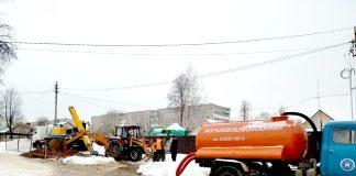 Работники водоканала устраняют порыв водопроводной сети на улице Ленина в Климовичах