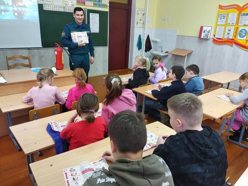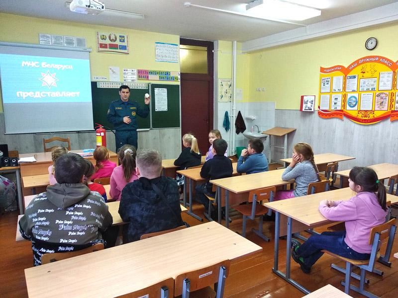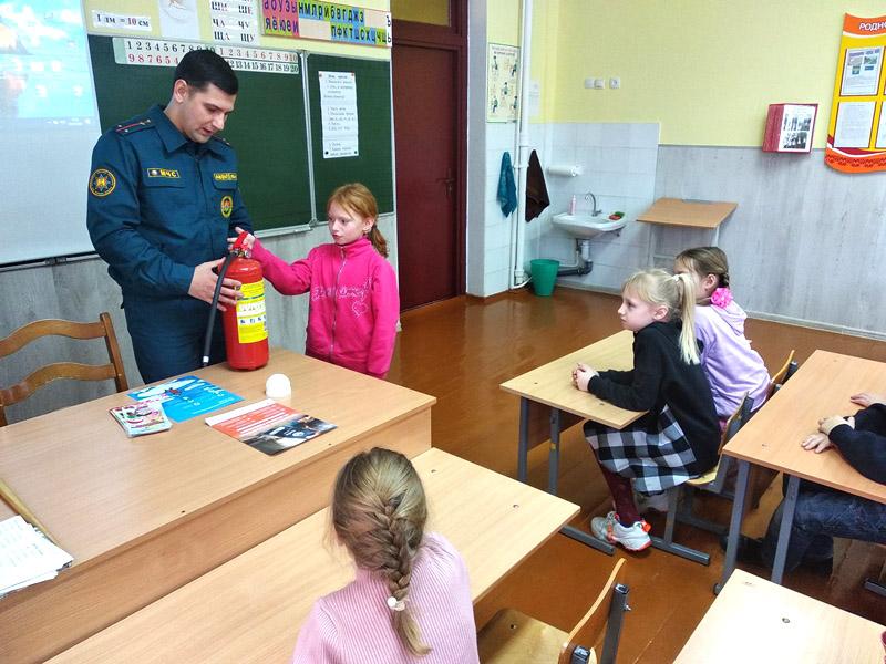 Инспектор сектора пропаганды и взаимодействия с общественностью Климовичского РОЧС Андрей Еремин напомнил ребятам основные правила пожарной безопасности как дома, так и в стенах школы. Также вместе вспомнили основные причины возникновения пожаров и то, какими подручными средствами пожаротушения можно воспользоваться. Не остались без внимания номера телефонов экстренных служб и правила вызова спасателей.