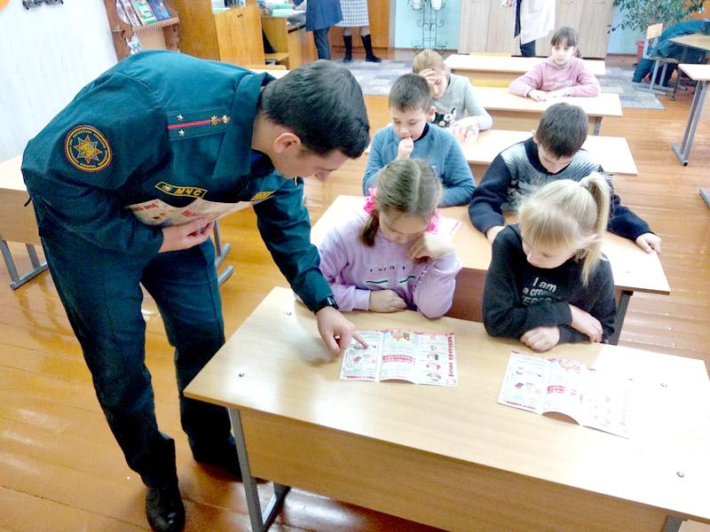 Особое внимание спасатель уделил зимнему периоду. Дети узнали, какие правила нужно соблюдать при сильных морозах, об опасности выхода на лед.