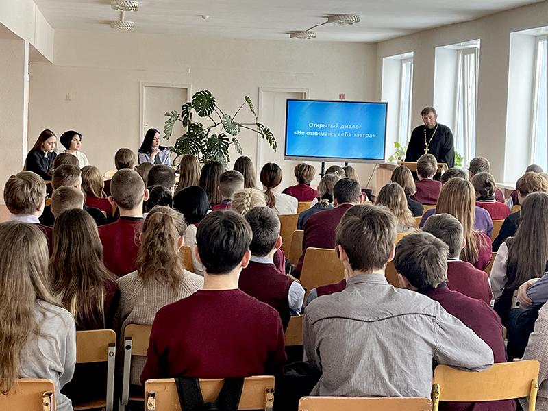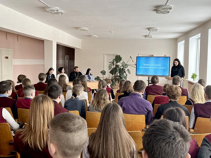 Гости поговорили с учащимися о ценностных ориентирах современных подростков, уровне информированности о табакокурении, алкоголизме и наркомании. Особое внимание было уделено духовной ценности человеческой жизни.