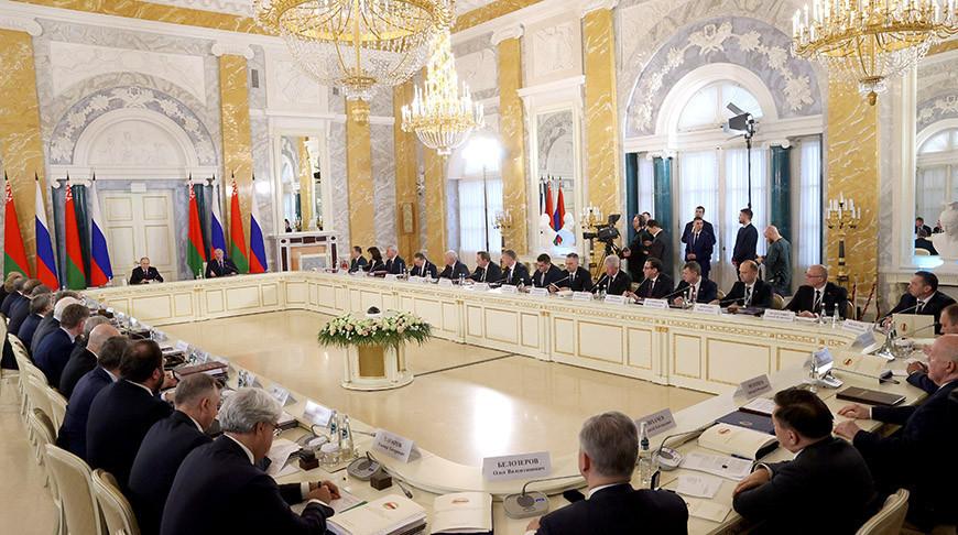 Президент Беларуси Александр Лукашенко обозначил главные задачи и направления в развитии сотрудничества в Союзном государстве как в текущем периоде, так и на перспективу. Соответствующие заявления глава государства сделал на заседании Высшего государственного совета Союзного государства в Санкт-Петербурге, передает корреспондент БЕЛТА.
