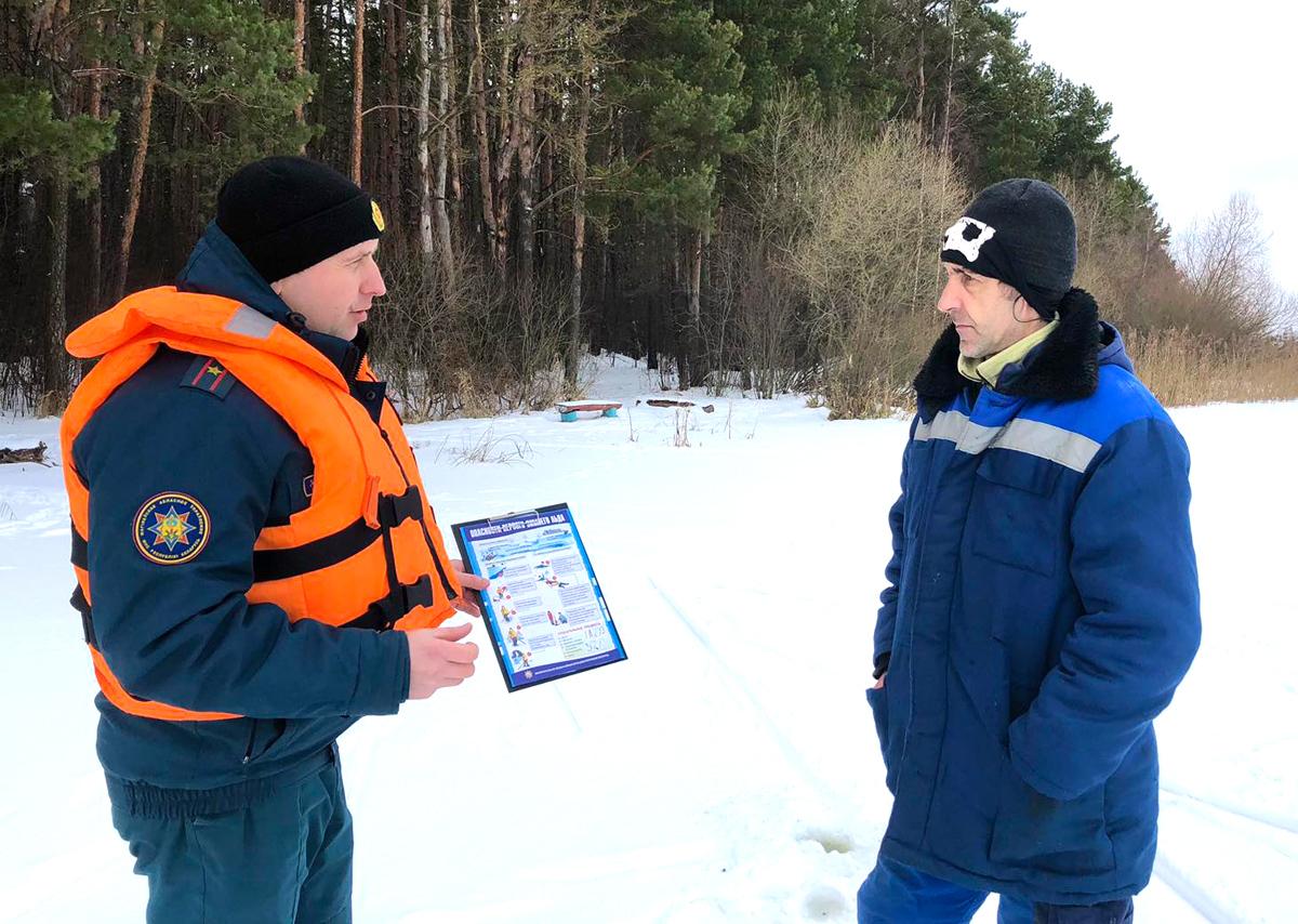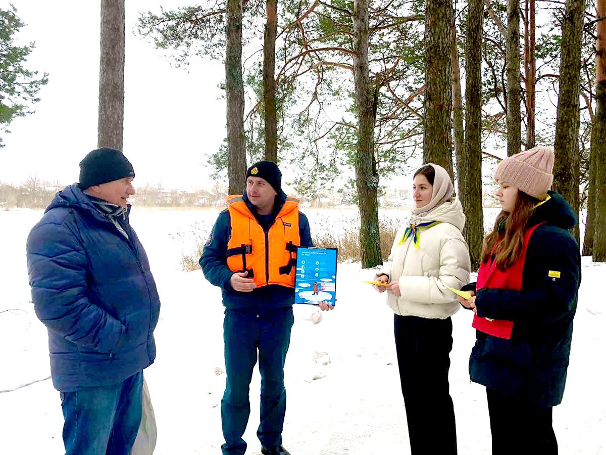 Активисты БРСМ и БМООСП в Климовичском районе провели профилактическую акцию «Зимний патруль» на городском озере.